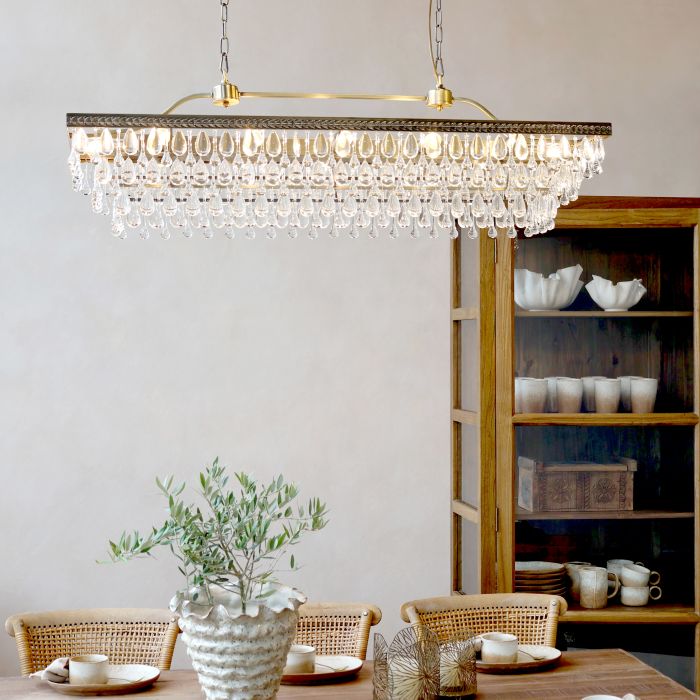Elegant Aflang Lysekrone i Antik Messing – Håndlavet Statement Lighting