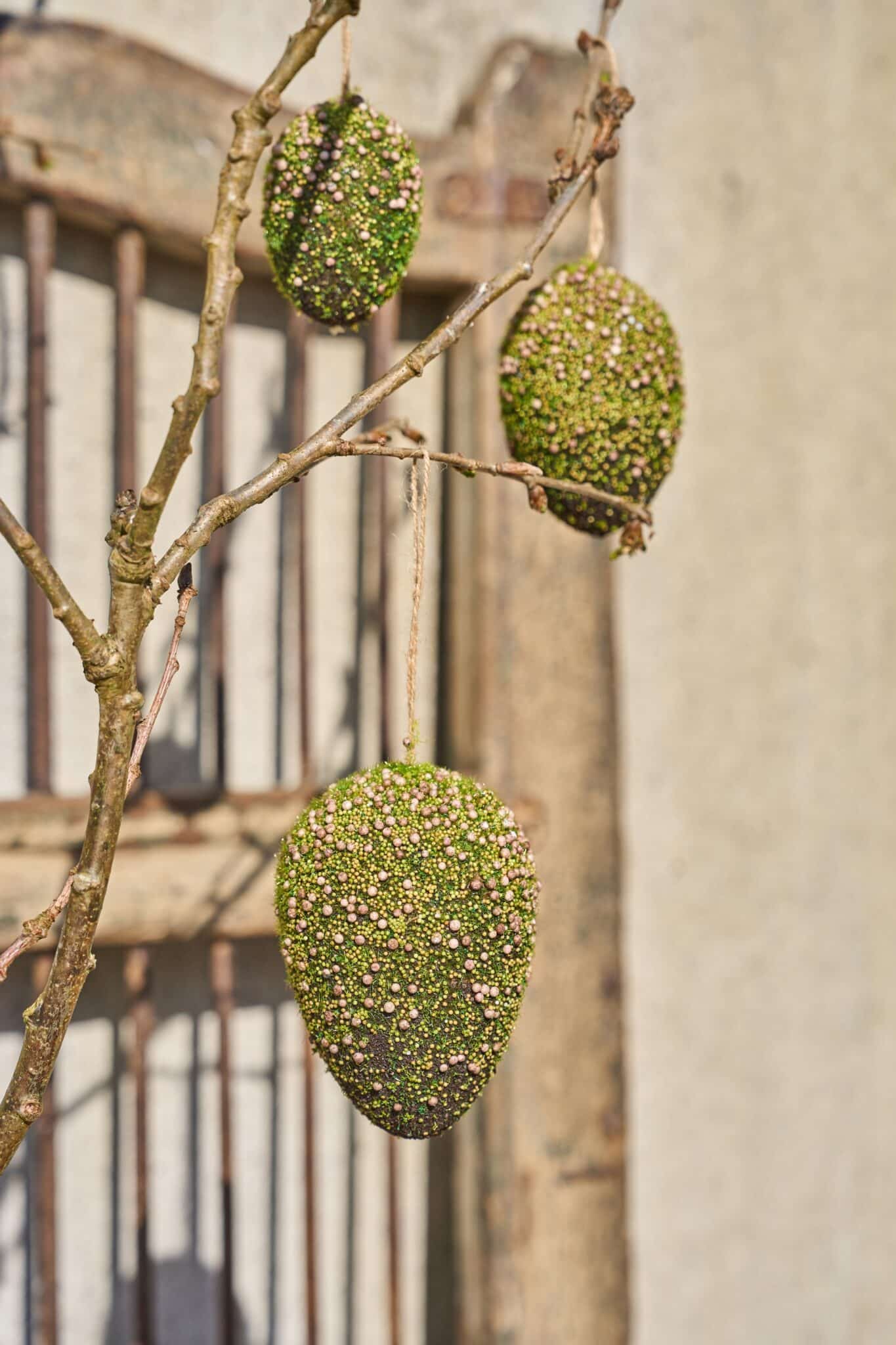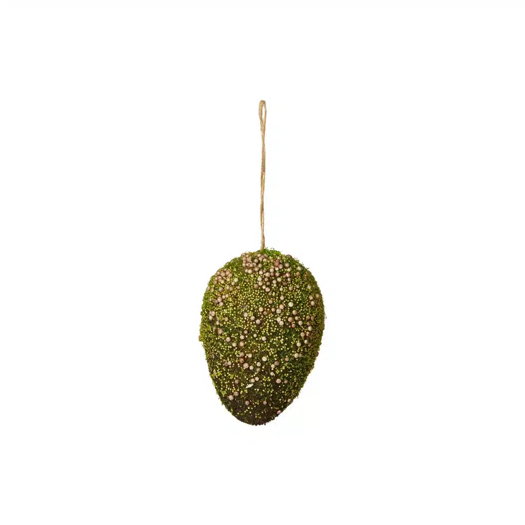 Mos æg med snor 10×7 cm – Naturinspireret påskepynt
