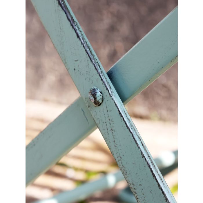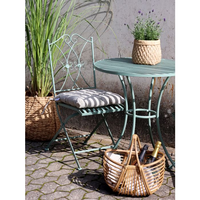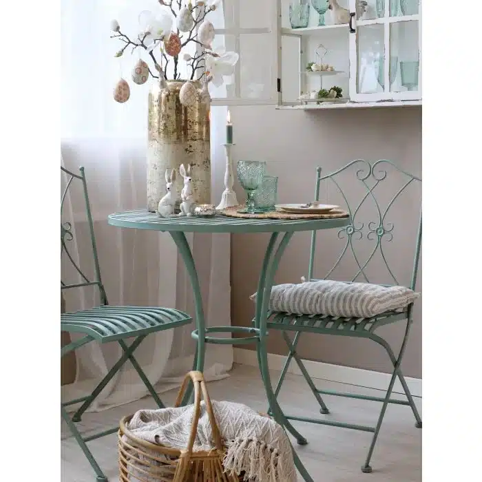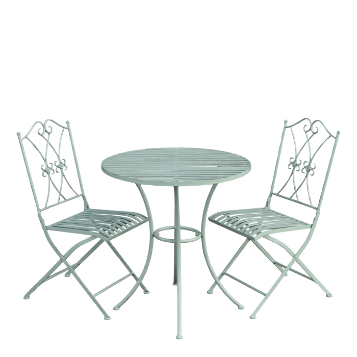 Dette cafésæt i antique verte bringer en let og romantisk atmosfære til haven, altanen eller terrassen.