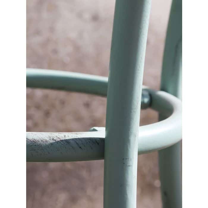 Den sarte grønne nuance kombineret med det patinerede jern skaber et udtryk, der føles både nostalgisk og elegant.