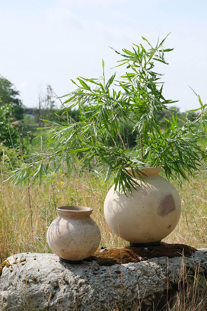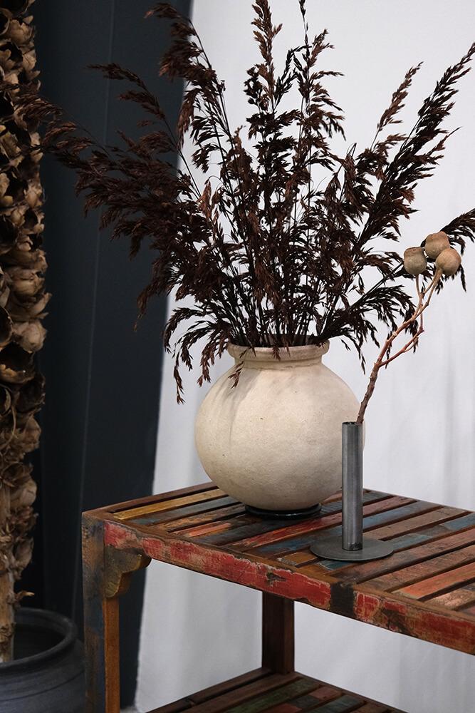 Med sin enkle form og varme, naturlige tone bringer Dali lerkrukken et strejf af middelhavsstemning ind i din indretning. Den står på en jernring, som skaber en smuk kontrast til det rå ler. Kombinér flere størrelser for et harmonisk og levende udtryk. Krukken er ikke vandtæt.
