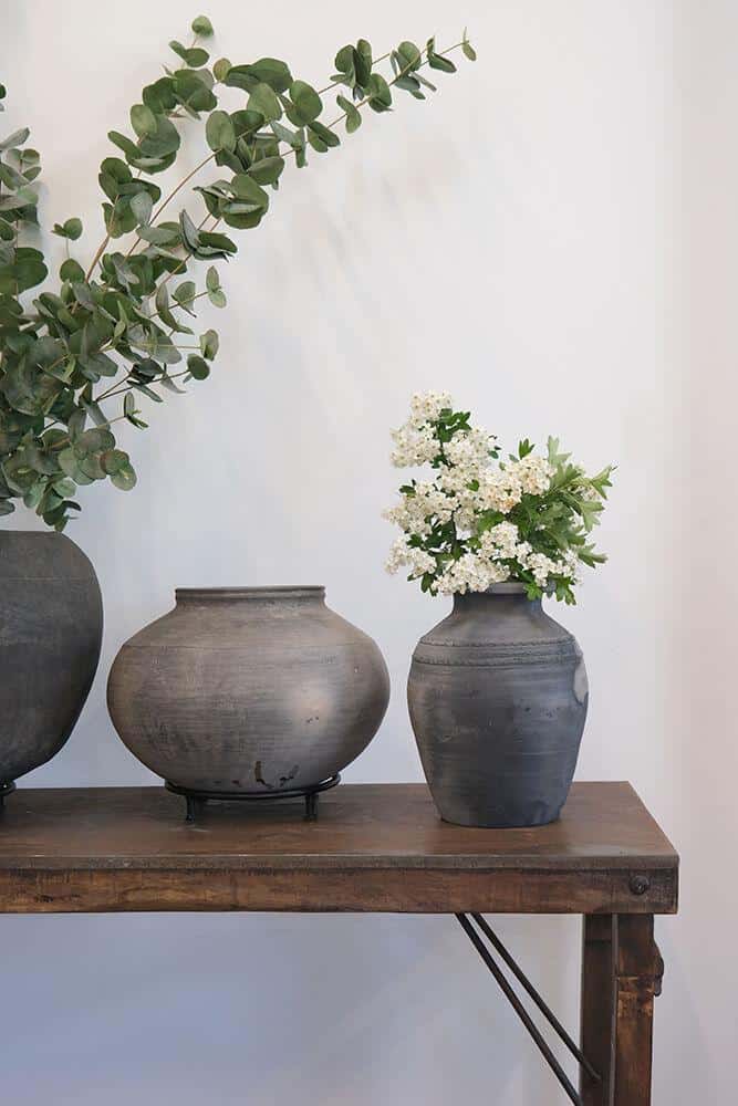 Denne unika lerkrukke på løs jernfod er helt fantastisk. Krukken har en smuk enkelt form og er et skønt blikfang at have stående i dit hjem eller din business. Krukkerne er meget forskellige i størrelser, farvetone og finish og de kan være med små revner og skår. Krukken er gammel og håndlavet derfor anbefaler vi, at såfremt du sætter planter eller blomster i den, skal du fore krukken med kraftig plastik eller stille en glasindsats i bunden.