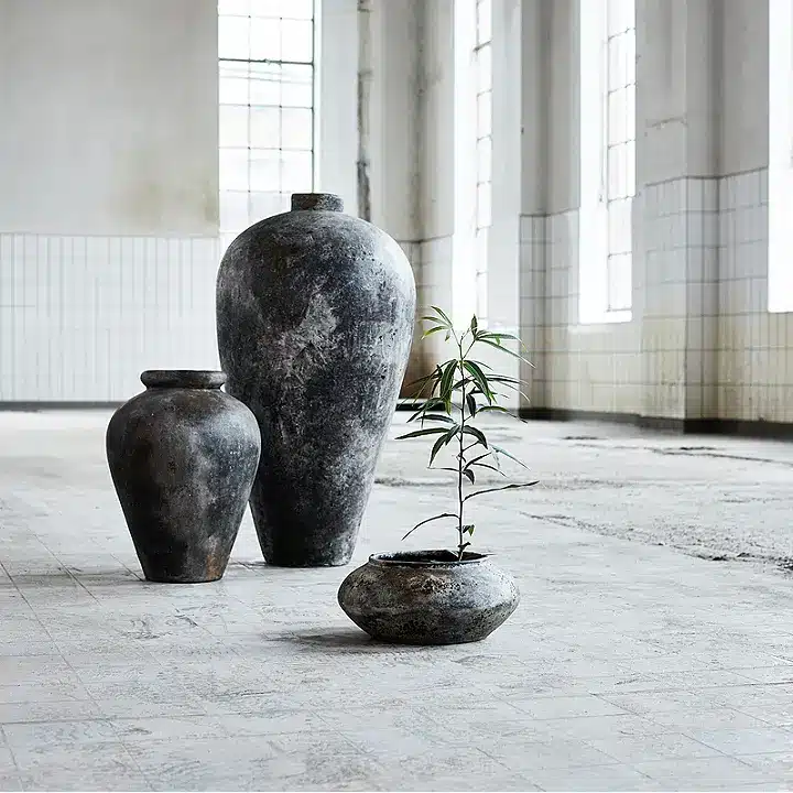 Muubs Echo Krukke – Terracotta Ø35 x H17 cm | Rustgrå Finish