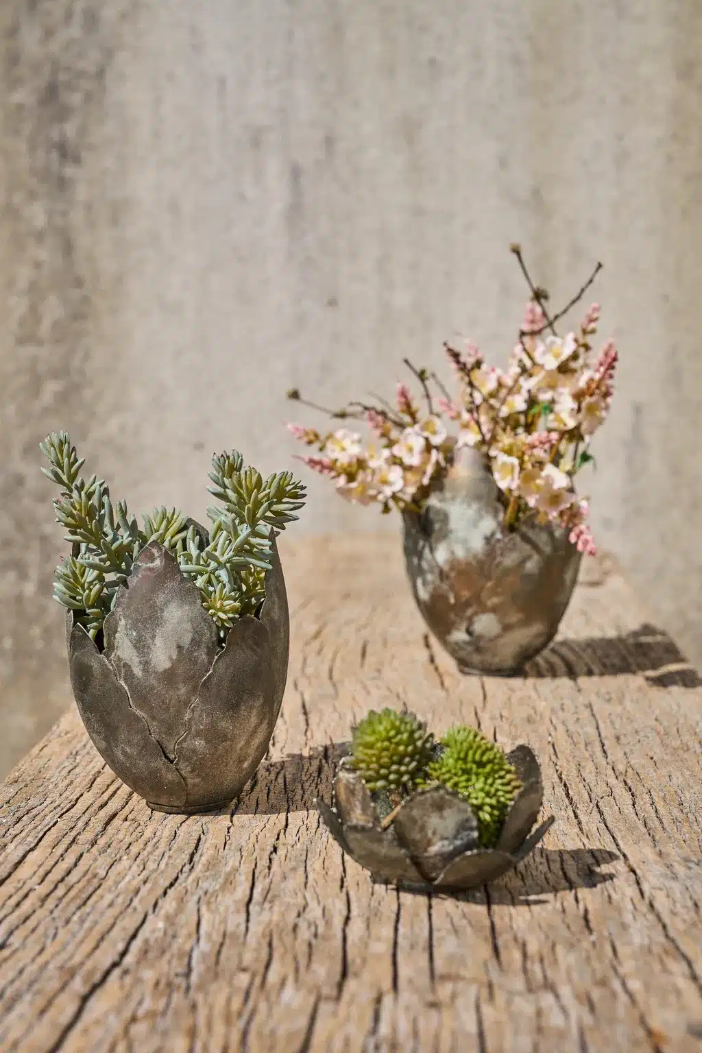 Opsats/skjuler i flot antik grå finish. Vær obs på at varen er håndlavet og svejsning kan være utæt. Så brug enten med en inder skjuler eller til kunstige planter. Placer på beskyttet overflader. Fåes i flere størrelser og faconer.