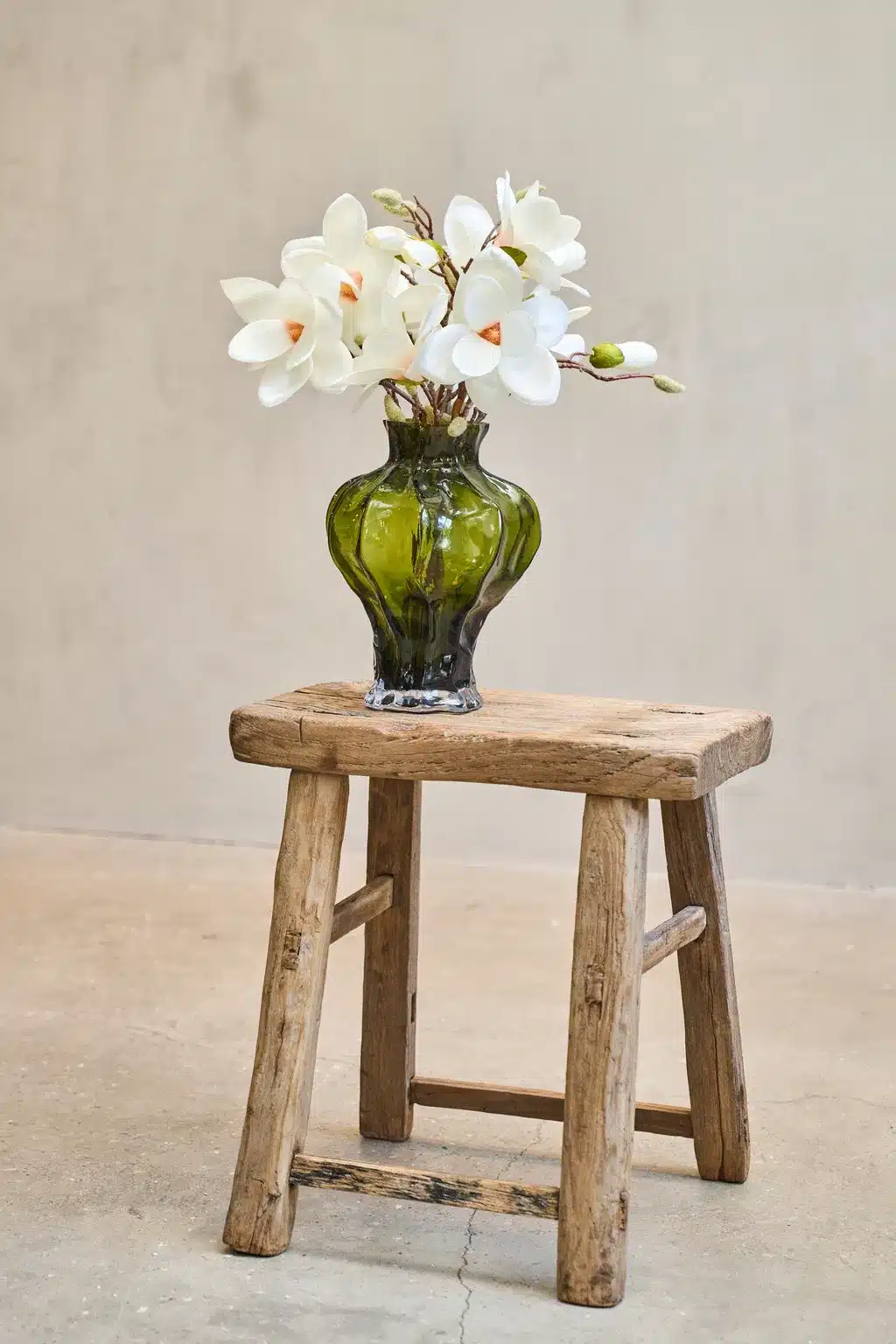 Elegant vase i mundblæst, gennemfarvet glas – hver en boble gør den unik. Perfekt til både enkelte stilke og fyldige buketter. Tip: Kombinér med vores smukke kunstige blomster for et vedvarende udtryk.